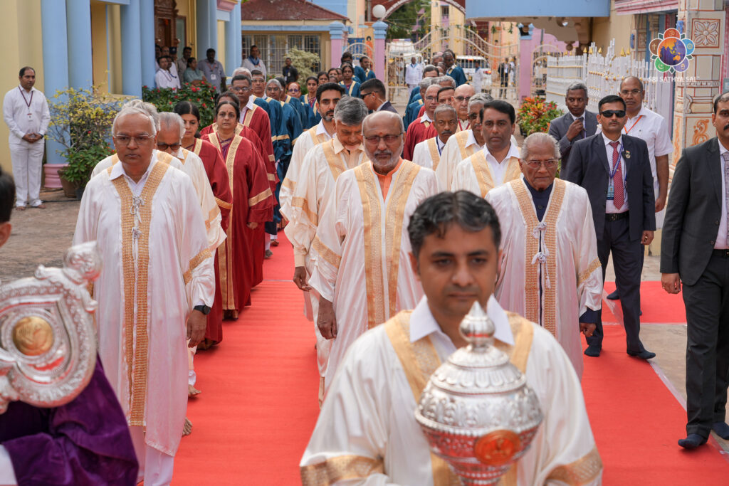 In keeping with tradition, the ceremonial procession—led by the Registrar bearing the mace and the Institute insignia—featured the Chief Guest, Guest of Honour, Chancellor, Vice-Chancellor, Registrar, Controller of Examinations, Deans, and members of the SSSIHL Public Charitable Trust, Executive Council, Academic Council, and Finance Committee, as they made their way to the dais at the Poornachandra Auditorium.