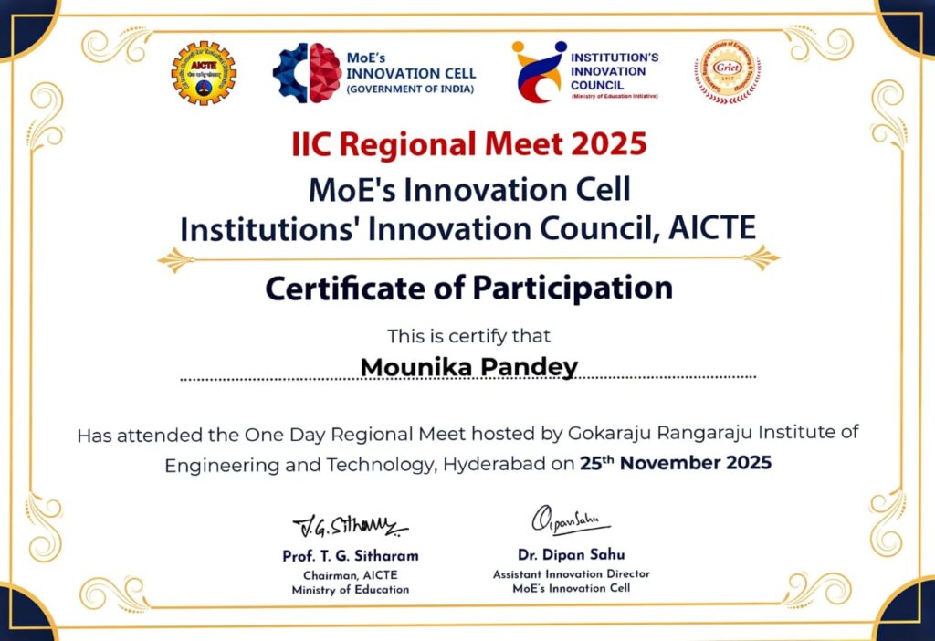 The regional meet, held on 25 November 2025 at the Gokaraju Rangaraju Institute of Engineering and Technology, Hyderabad, was organised by the Ministry of Education’s Innovation Cell and AICTE. The event brought together some of the brightest young innovators from across Telangana and Andhra Pradesh.
